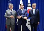 ニューヨークで会談した岩屋毅外相(左)、ルビオ米国務長官(中央)、韓国の趙顕外相。核・ミサイル開発を続ける北朝鮮の非核化を目指す方針を盛り込んだ共同…